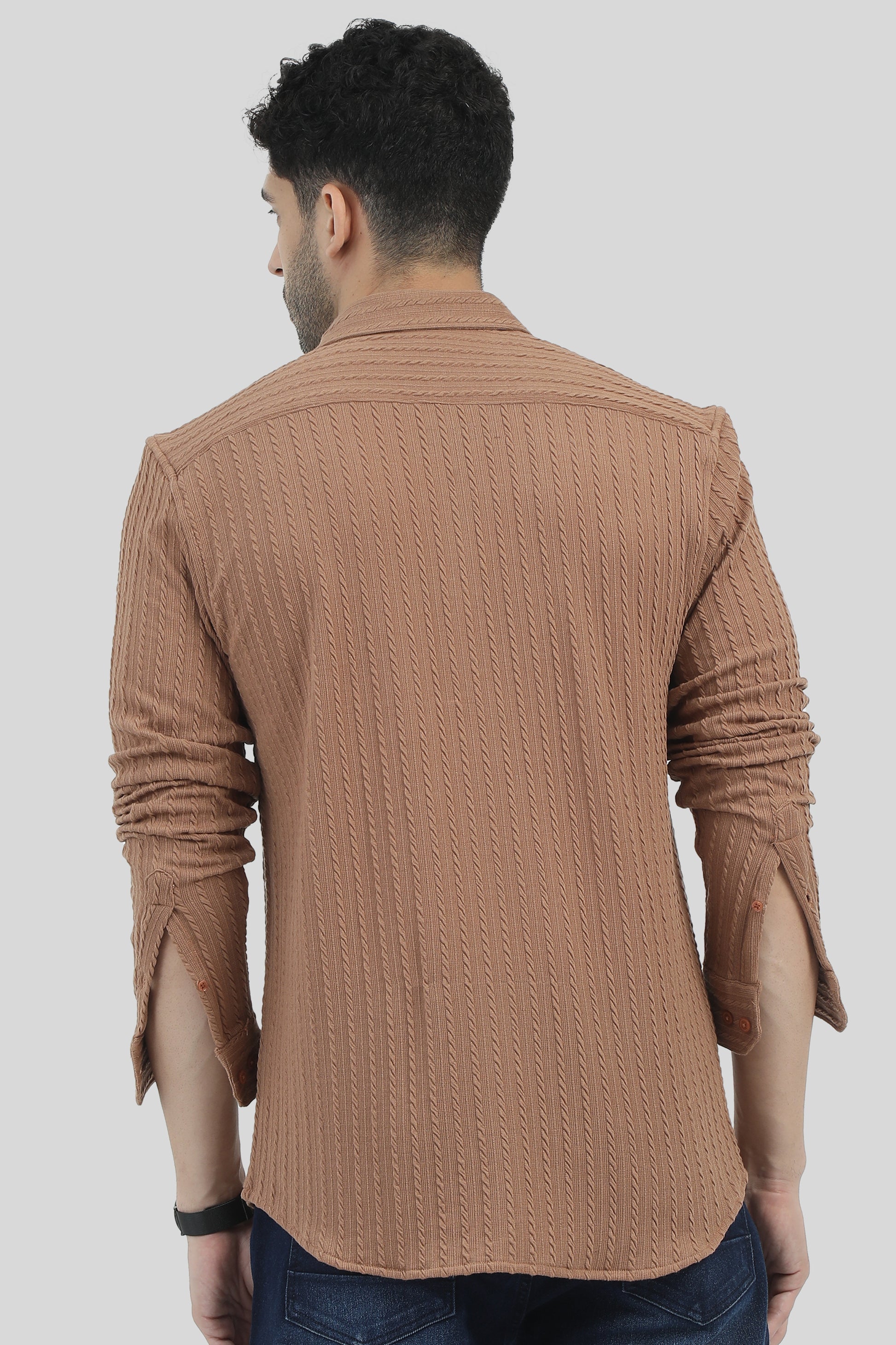 This long-sleeved shirt showcases a delicate vertical cable-knit pattern that enhances the simplicity and elegance of its design. Made from lightweight, breathable material in a gentle beige shade, it combines comfort and style, making it ideal for daily use or smart-casual events. The traditional spread collar and fitted cut ensure a polished look, while the neutral hue allows for easy coordination with jeans or chinos.