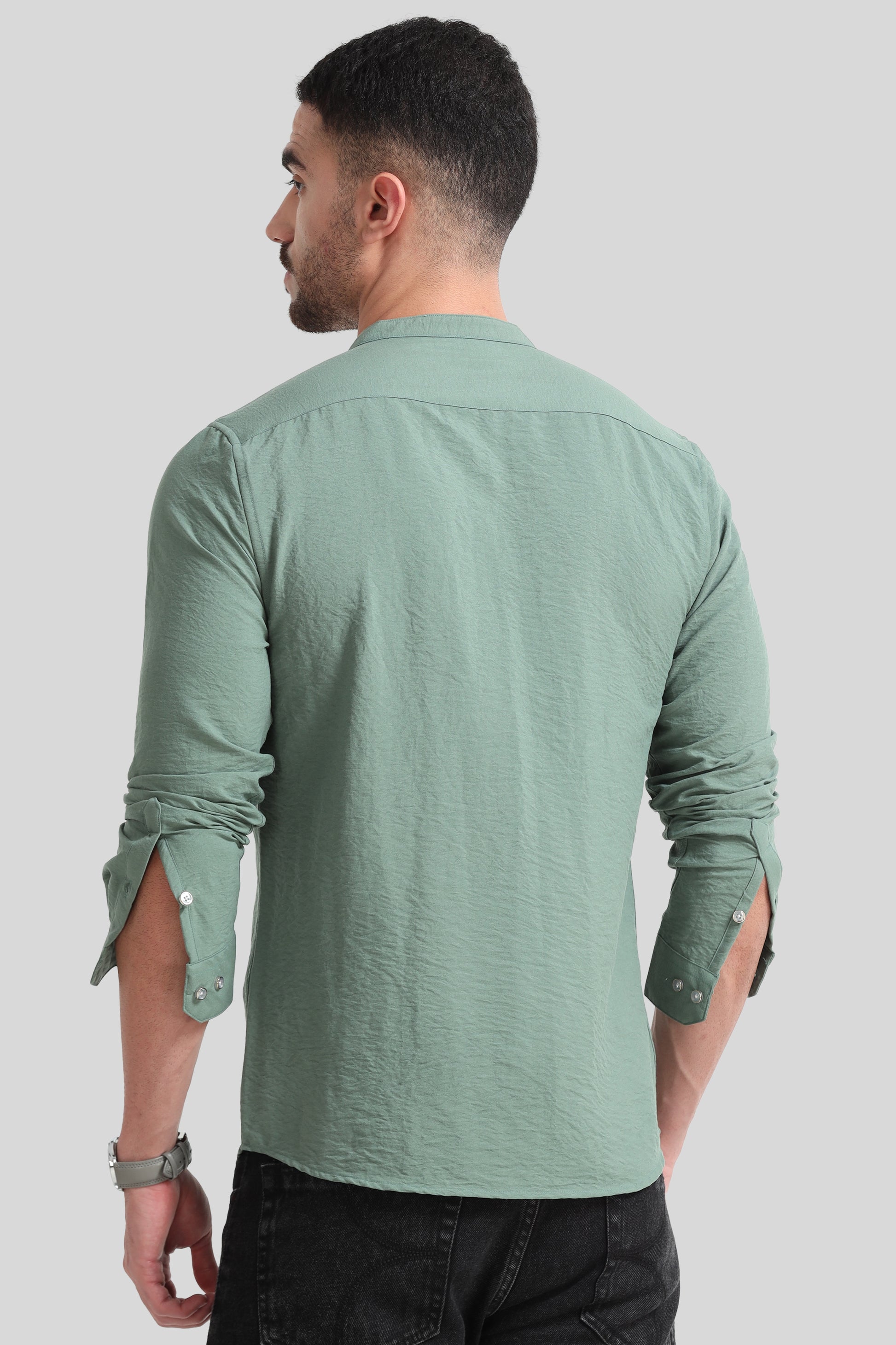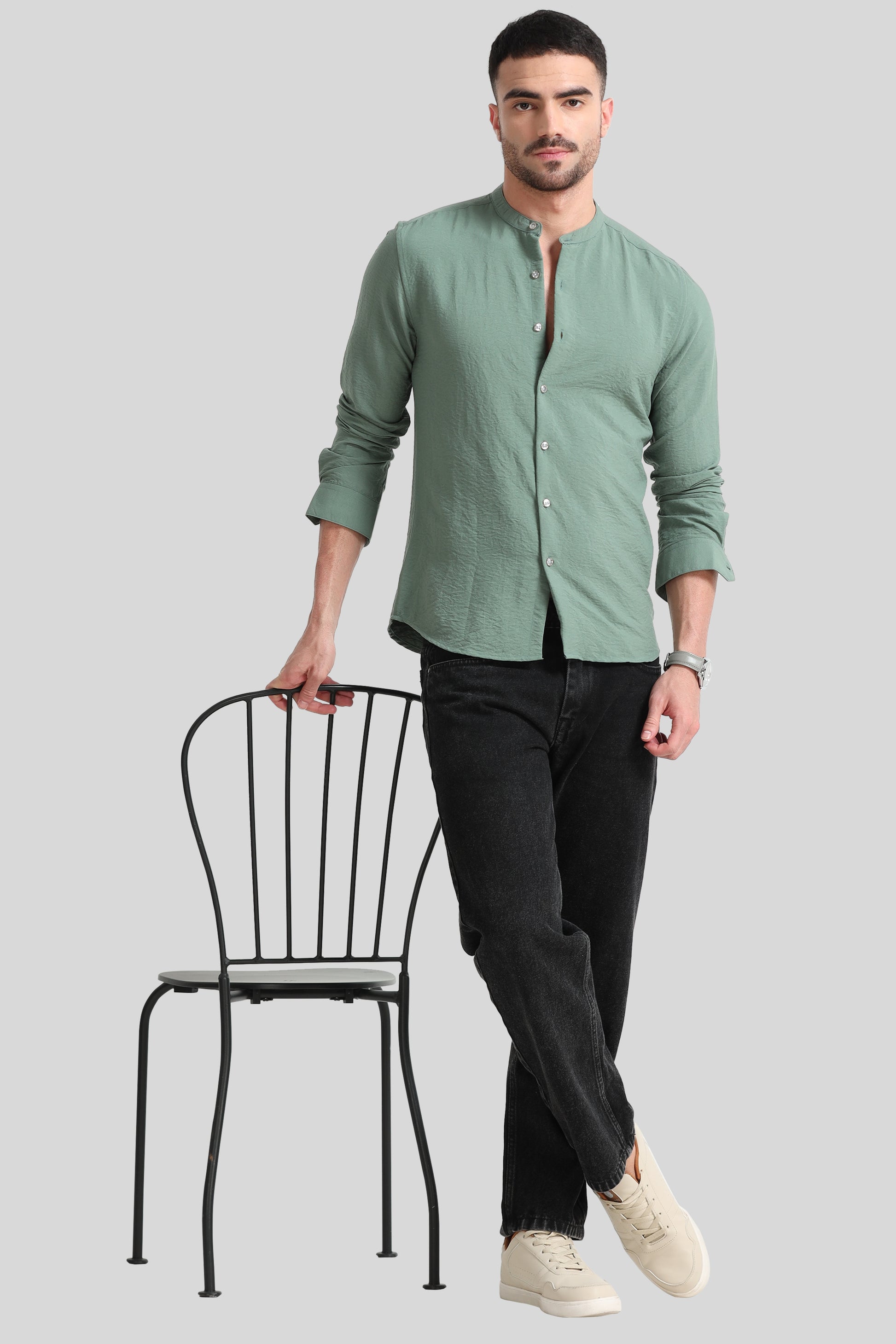 Embrace a blend of modern style and comfort with this pista mandarin collar shirt for men. Crafted from soft, breathable fabric, it features a sleek button-down front and full sleeves, offering a sophisticated look that’s perfect for both casual outings and semi-formal occasions. The minimalist design adds a touch of elegance to any wardrobe.