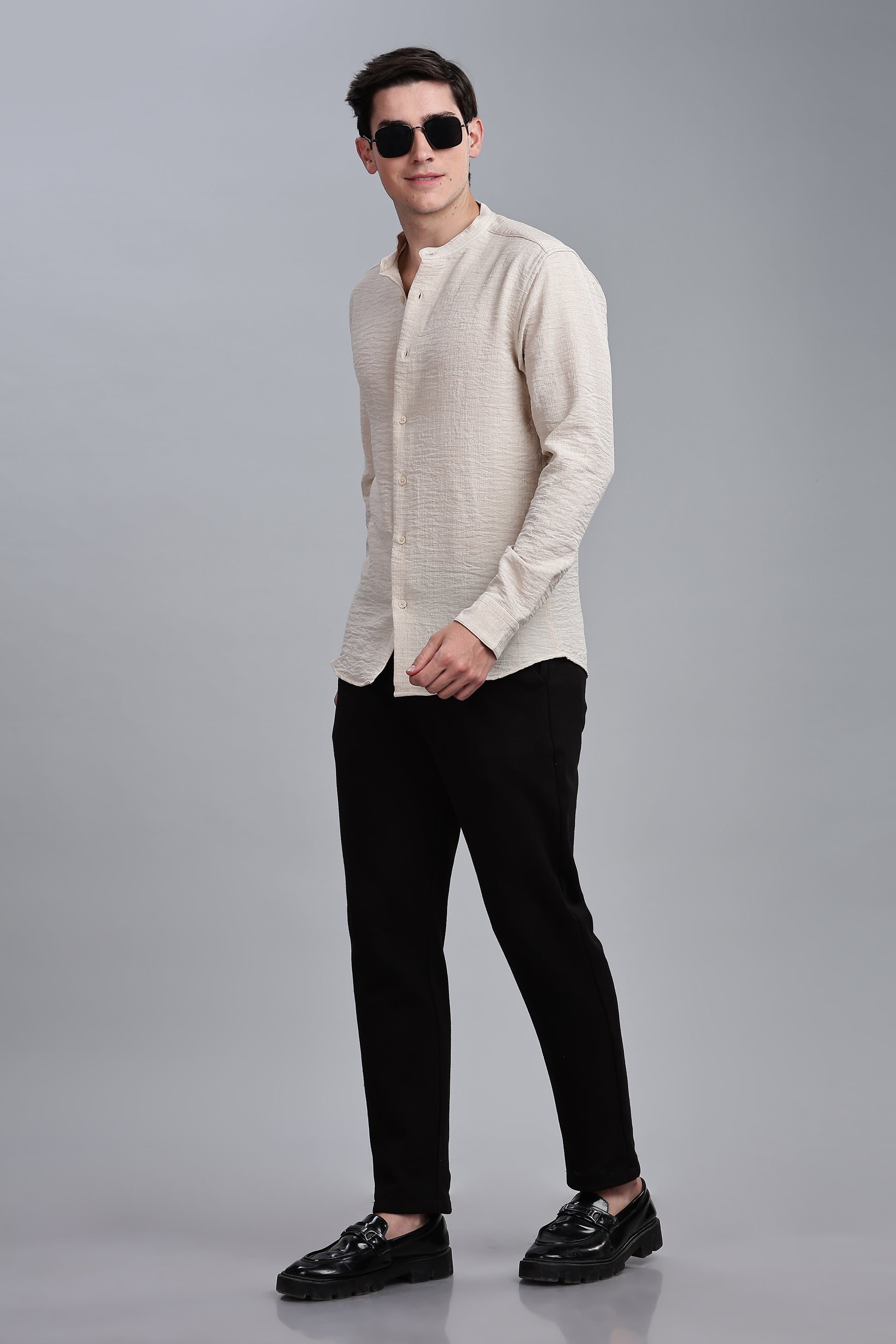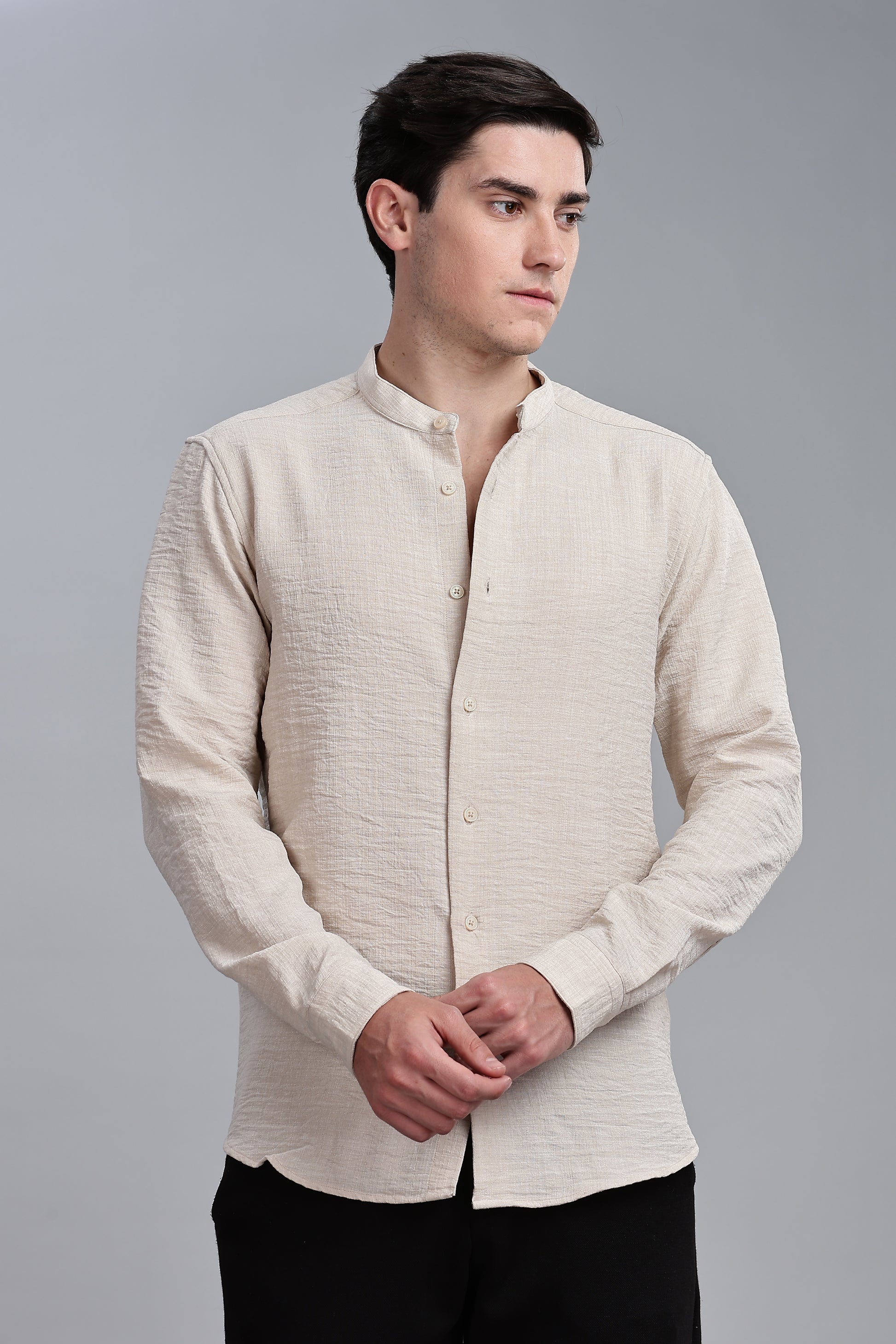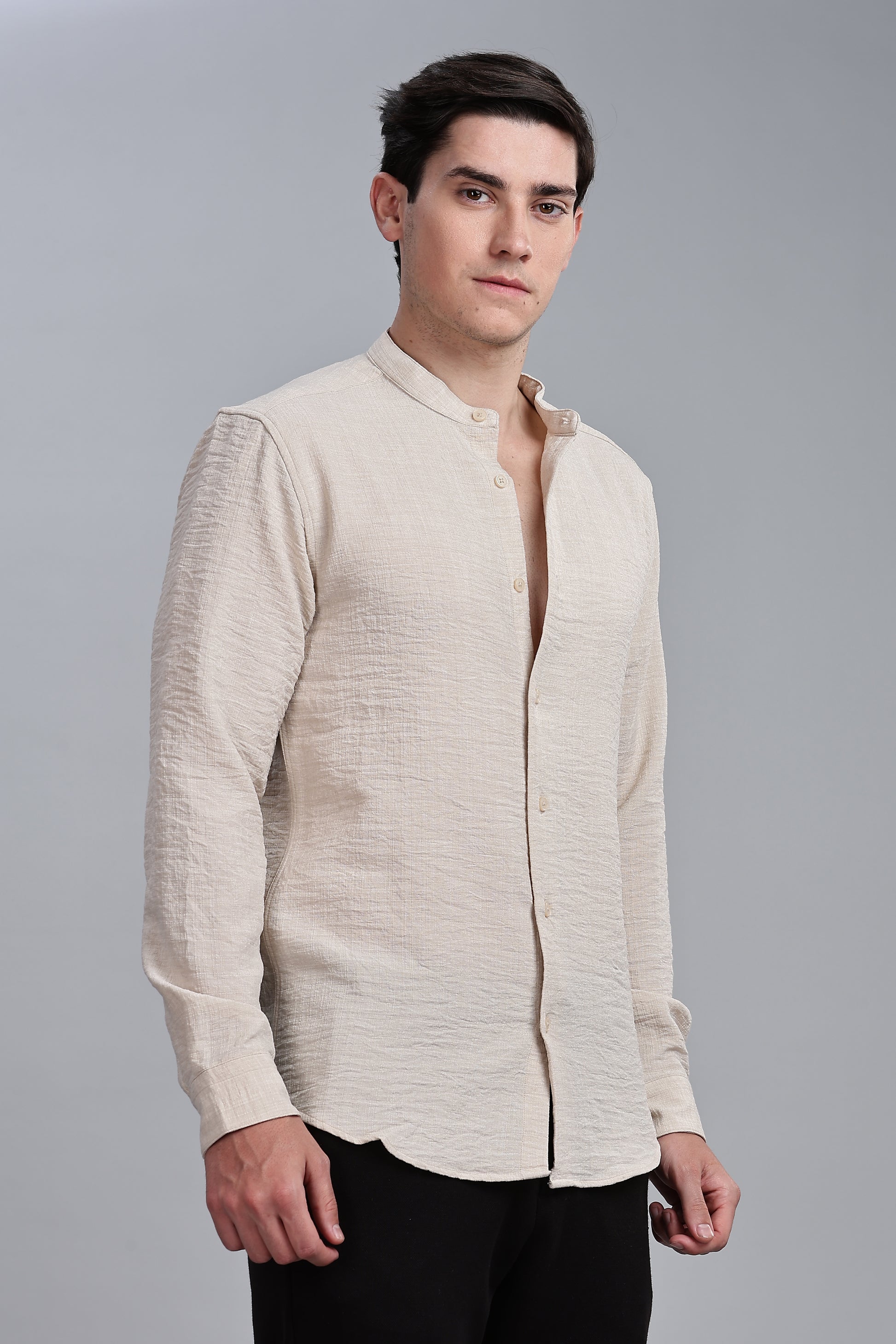 Oldlove Textured Geo-Knit Oatmeal Shirt